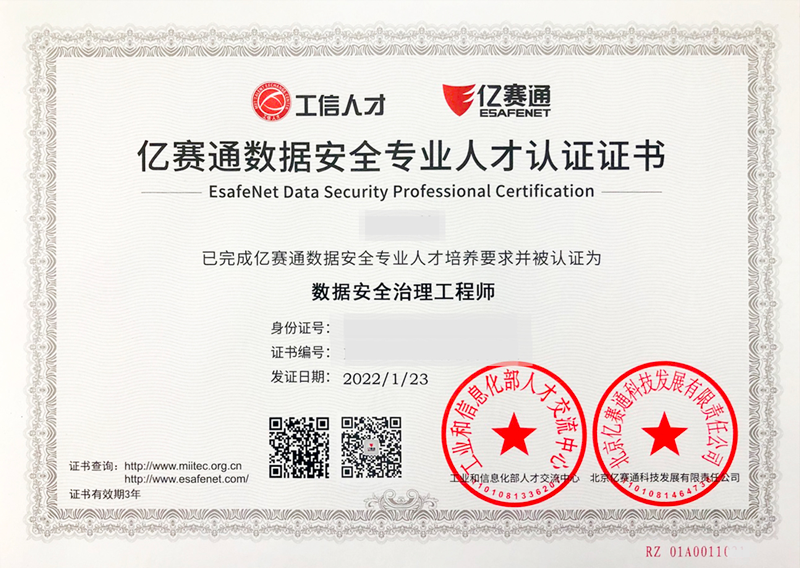 數(shù)據安全治理(lǐ)工(gōng)程師(shī)認證證書(shū)
