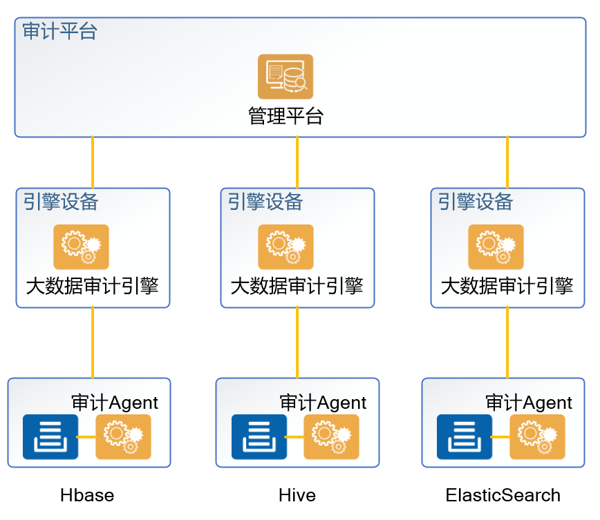 支持Hadoop、HDFS、HBase、Hive、Impala、ES、MongoDB、java API、JDBC API、REST API等大(dà)數(shù)據平台及相(xiàng)關組件(<jiàn)的(de)審計(jì),實現(xiàn)大(dà)數(shù)據全面完整審計(jì)。